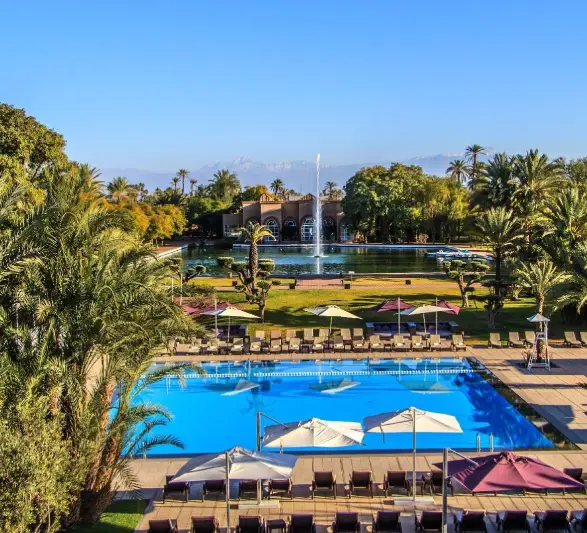The 5-star Barceló Palmeraie Oasis Resort Hotel stands majestically in the heart of the Palm Grove of Marrakech, an extensive oasis full of palm trees that extends over more than six thousand hectares, being one of the most emblematic areas of this former imperial city in western Morocco.
