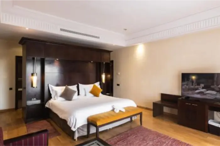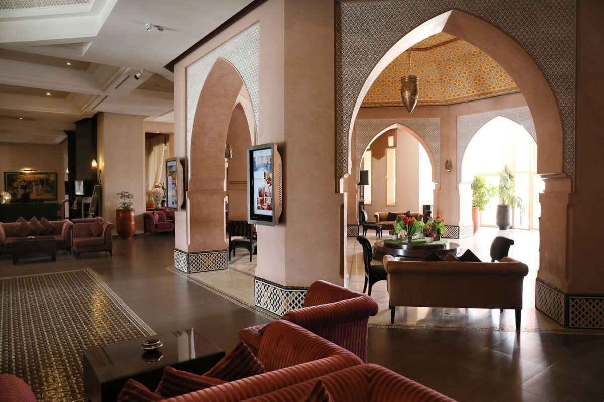 The KENZI MENARA PALACE is a priceless jewel set in the crown of the privileged and World Class location: the ochre, legendary resort of Marrakesh, located right opposite the original ramparts, ancient walls which surrounded this unique, timeless oasis, whilst facing the splendid, manicured lawns, greenery and citrus groves of the Agdal Royal Gardens, shaded in the dappled sunlight, a joy to behold.