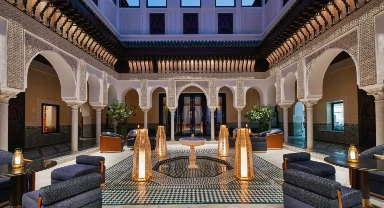 Wherever you look, you will be struck by a majestic beauty. A beauty that you will long touch, to feel beneath your fingertips: the softness of velvet and leather, the contours of sculpted plaster and zellige tilework, the freshness of cool marble.