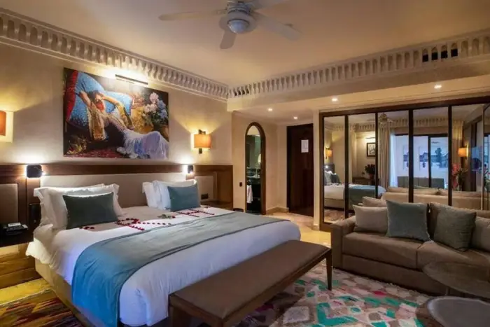 Les Jardins de la Koutoubia boasts 108 rooms including 30 Mini Suites, 22 Junior Suites and 2 Royal Suites. All the rooms are equipped with air conditioning, satellite television, direct line telephone, minibar, safe, hairdryer and Wi-Fi.