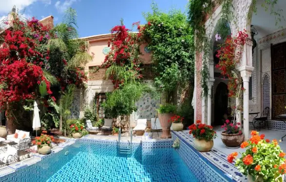 Located in the heart of Medina a mere 5-minute walk from Koutoubia Mosque and Jamaâ El Fna Square, The Palais Sebban Marrakech is a stylish four-star Moroccan riad that dates back to the 19th century and features a rooftop terrace and an outdoor pool. The hotel features 25 guestrooms that combine Moroccan and Andalusian architecture. The rooms feature minibars, private bathrooms with bathtubs and showers, phones, in-room safes, and free Wi-Fi. The Palais Sebban Marrakech guests can pamper themselves by indulging in the full-service spa or by taking a plunge in the outdoor pool. Other amenities by the hotel include 24-hour room service, designated smoking areas, luggage storage facilities, a garden, and free Wi-Fi. The onsite restaurant specializes in Moroccan cuisine for breakfast, lunch, and dinner. Guests can indulge in a variety of drinks at the bar/lounge. Almoravid Koubb is 0.7 miles from the hotel while Majorelle Garden is 0.3 miles away